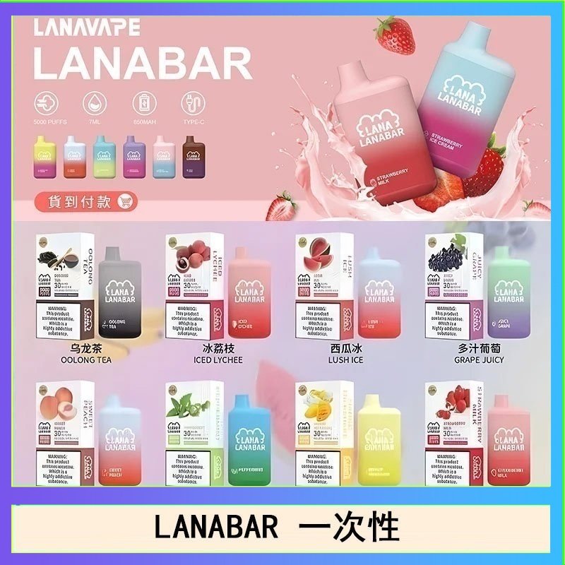 【一次性/拋棄式】LANABAR 5000 PUFF一次性5000口(3.0%) 13ml容量 可充電Type-C型